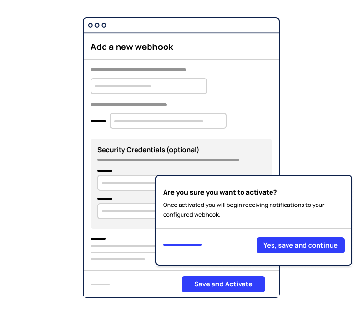 We provide an easy-to-use self-service UI where you can configure and test your webhooks in a matter of minutes.