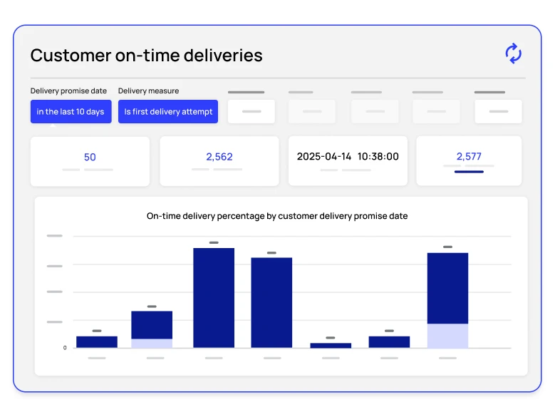 Make carrier decisions using objective data. Gain clear dashboard visibility into on-time delivery, loss and damage, return-to-sender rates, and tracking quality across your carrier network. Use consistent insight to manage carriers in ways that protect the delivery experience and increase customer trust.